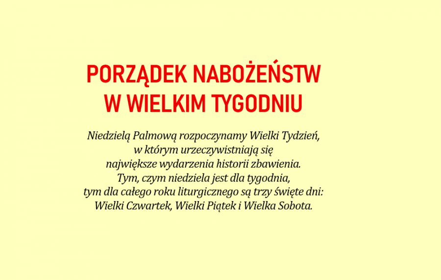 WIELKI PONIEDZIAŁEK – WIELKA ŚRODA