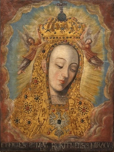 Tytuł Maryi „Orędowniczki Pojednania” jest używany w Rokitnie. Maryja okazała się być Orędowniczką Pojednania w czasie buntu przeciwko królowi Polski w latach 1670-71. Król zabrał sławny obraz rokitniański na tereny kraju objęte buntem, pod Lublin. Powrót do jedności uznano za szczególną łaskę wyproszoną za wstawiennictwem Maryi, czego wyrazem stało się wotum ufundowane przez rycerstwo i króla, na którym do dzisiaj czytamy wezwanie: Da pacem Domine diebus nostris („Daj, Panie, pokój naszym dniom”). Matka Boża Łęgowska jest od 1741 roku Orędowniczką Pojednania także na ziemi łęgowskiej.